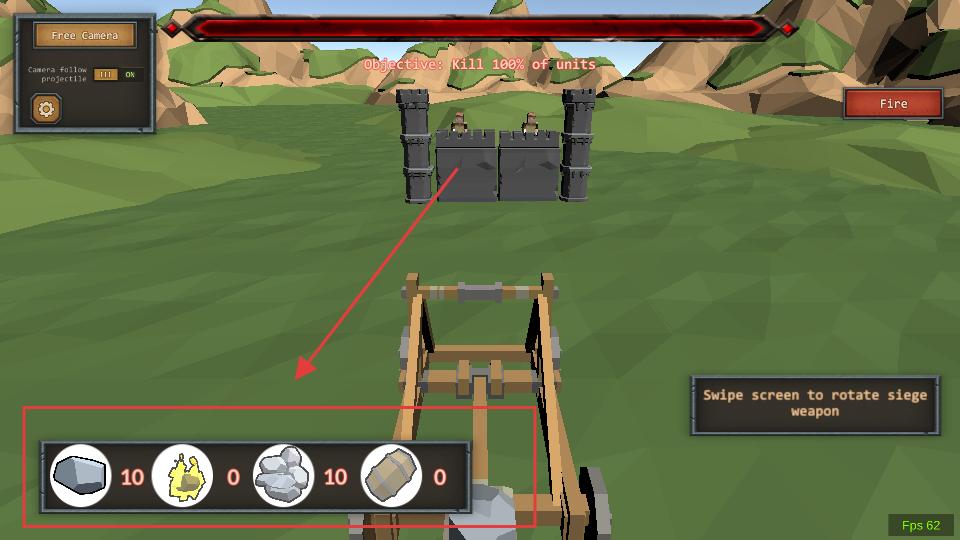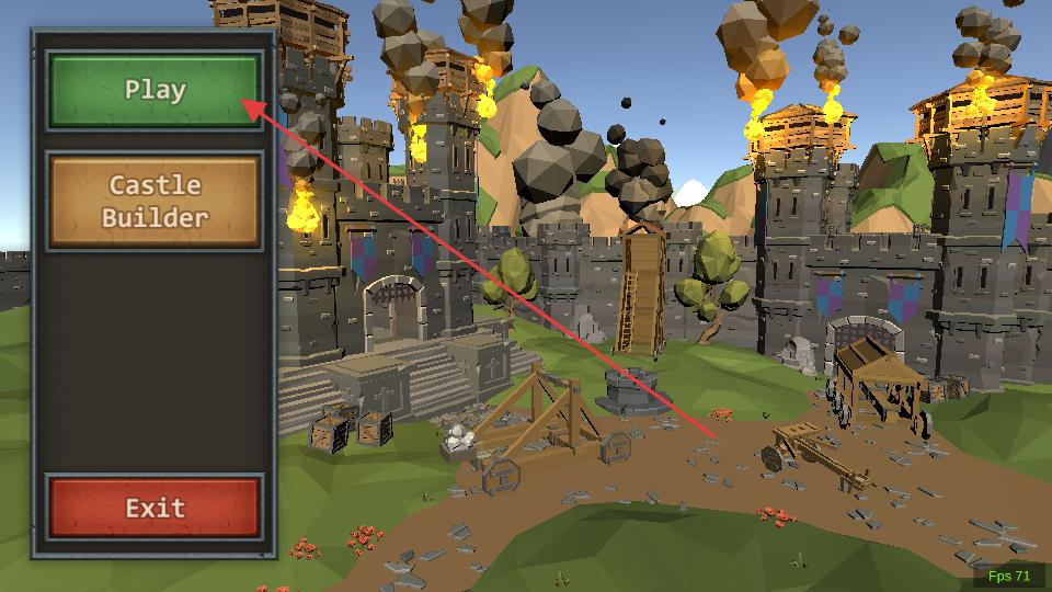 1、點擊Play按鈕,進入城堡攻防戰斗場景,此時會看到攻城武器和敵方城堡,準備操控攻城武器展開攻擊。
