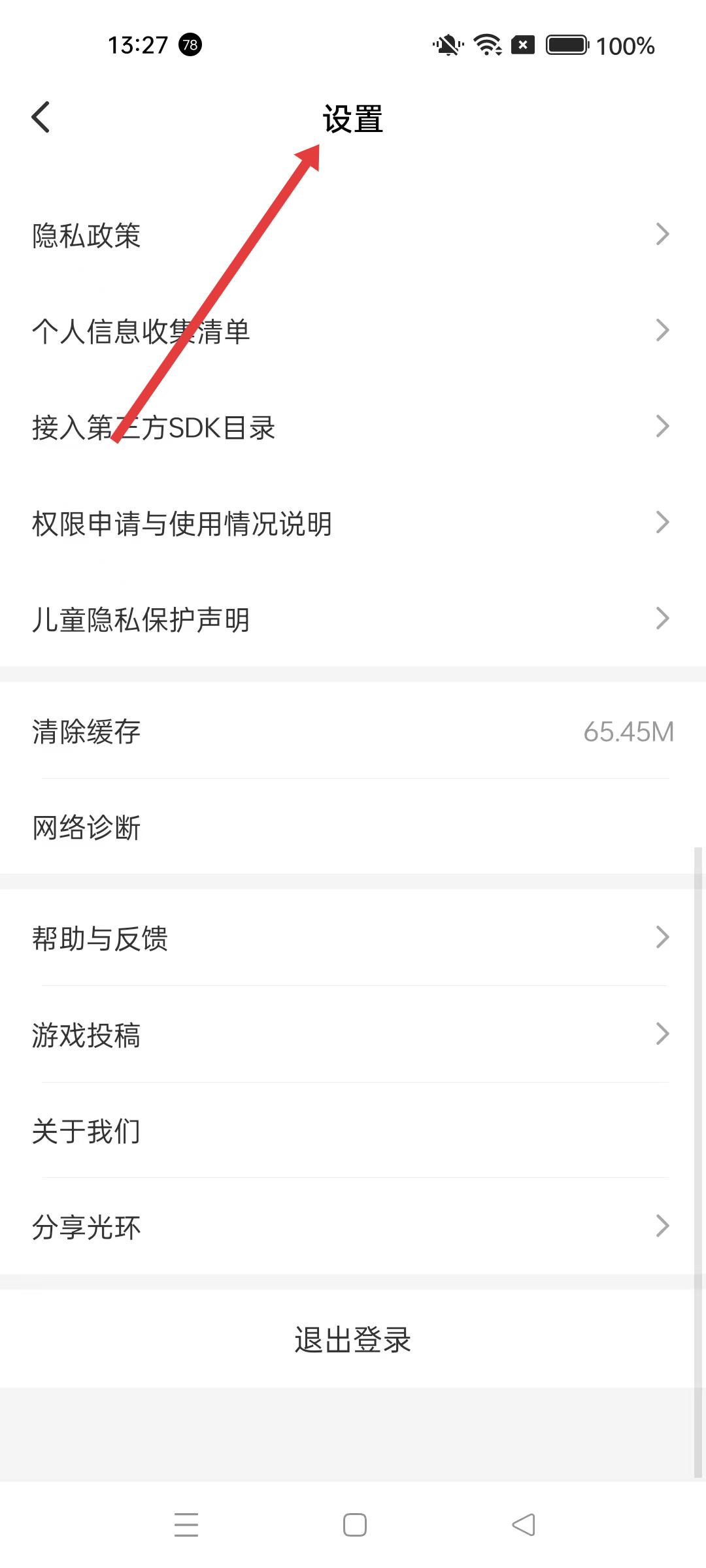 3、設置頁面,可看到隱私政策、清除緩存等選項,點擊退出登錄選項,彈出退出登錄確認框。