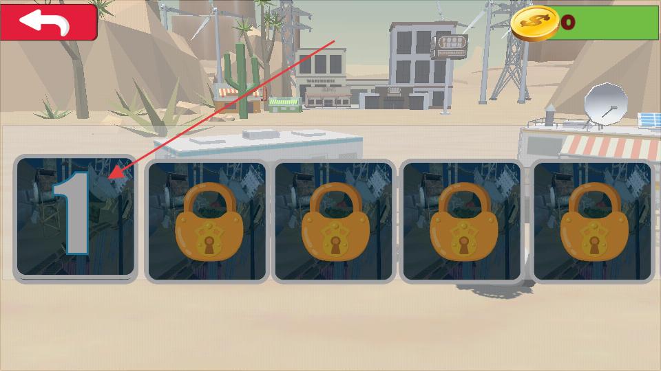 2、進入關卡選擇界面,此時會看到多個關卡選項,只有關卡1是解鎖狀態,準備進入關卡1開始游戲。