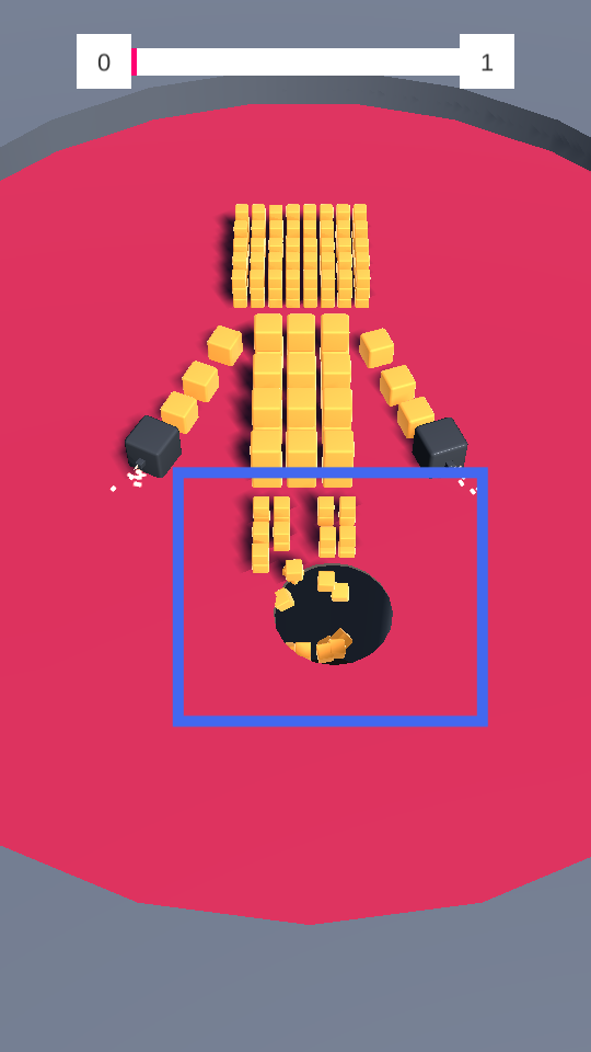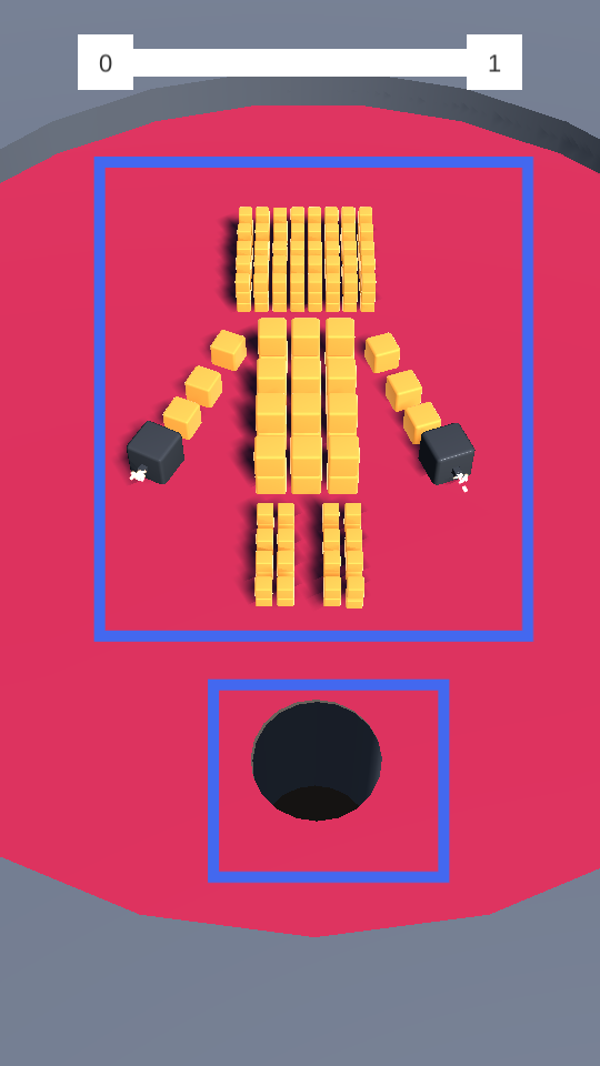 2、操控黑洞,讓它朝著黃顏色的方塊移動,看著方塊不斷掉進洞口,能感受到游戲的趣味,推進關卡進程。
