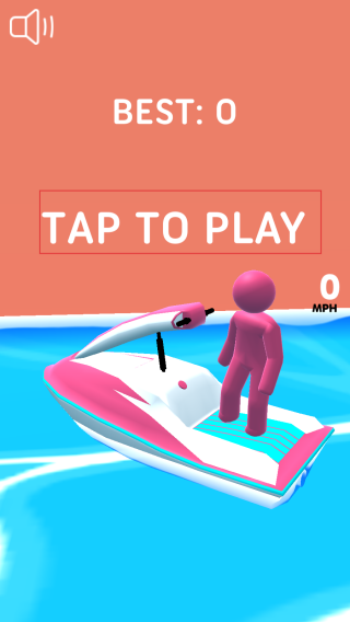 1、玩家下載游戲之后在游戲初始界面,點擊TAP TO PLAY按鈕,操控小人登上摩托艇,正式開啟水上摩托艇障礙競速賽。