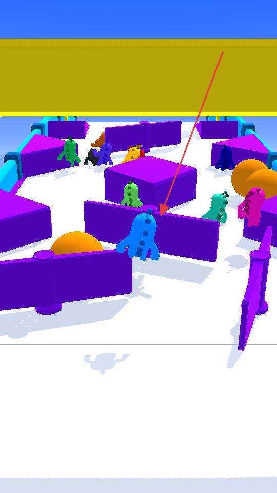 1、進入游戲操控藍色橡皮人在迷宮中移動,躲避其他顏色橡皮人,利用迷宮中的紫色障礙物作為掩護,規劃前進路線。