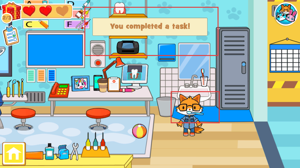 3、到達任務地點后,進行相應的互動操作,比如在牙醫診所完成刷牙動作,成功完成任務后,會有任務完成的提示。