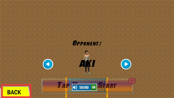1、在初始界面玩家熟悉教程操作之后,然后點擊TAP TO START按鈕,選擇對手即可進入正式的排球比賽。