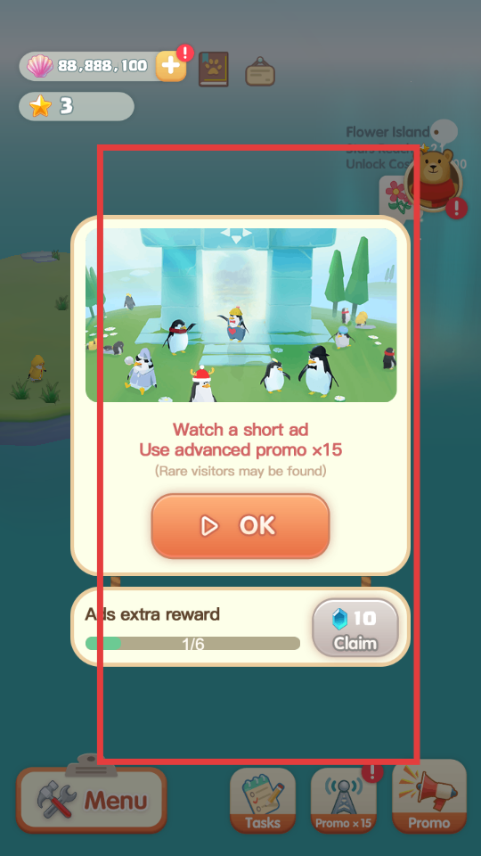 2、接著當彈出觀看視頻的窗口,此功能除了能觸發高級宣傳功能,還可獲得額外獎勵,這些獎勵可用于島嶼的建設、設施升級等,助力島嶼更快發展。