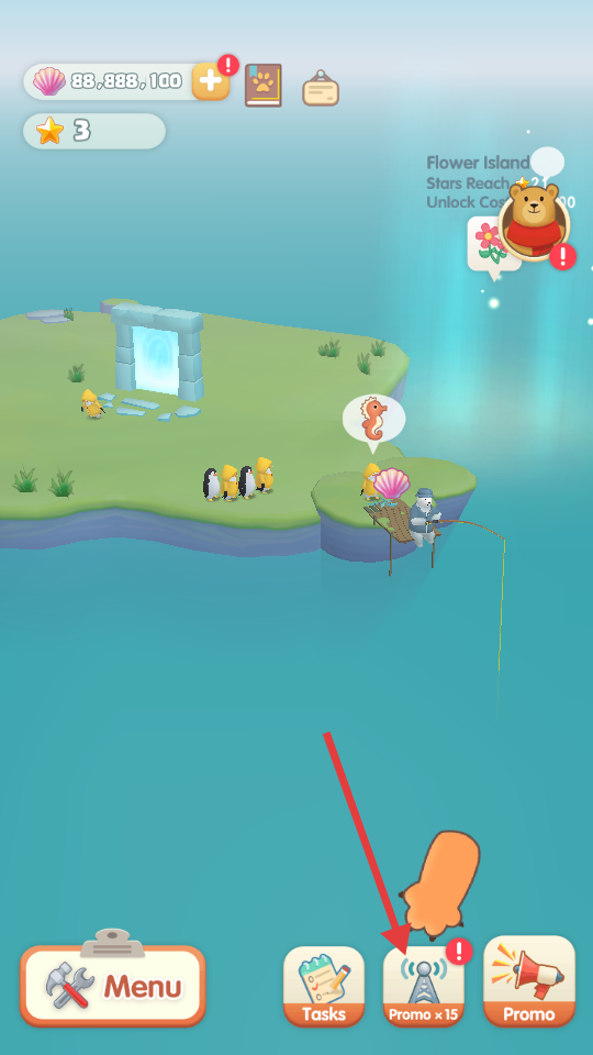 1、首先可點擊右下角Promo15按鈕,點擊后有機會吸引稀有訪客來到島嶼,增加島嶼的人氣與互動,為后續發展奠定基礎。