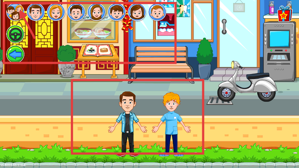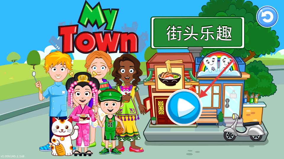 1、在啟動界面點擊播放按鈕,即可進入游戲的街頭場景,這里有多樣的建筑和角色,開啟在小鎮街頭的歡樂探索之旅,為后續的互動與游玩做好準備。