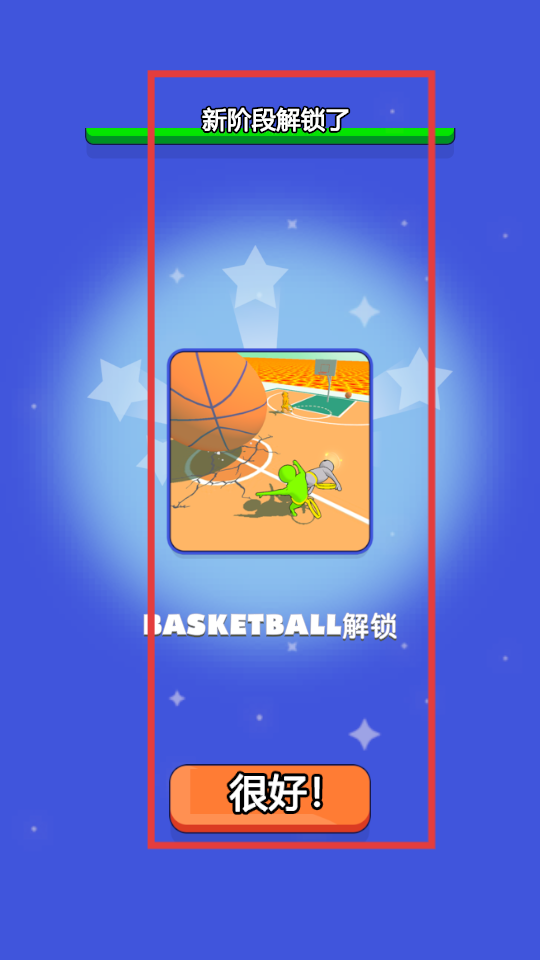 4、獲勝后會解鎖新階段,比如籃球主題場景,解鎖后點擊很好,就能進入新階段開啟新的游戲體驗。