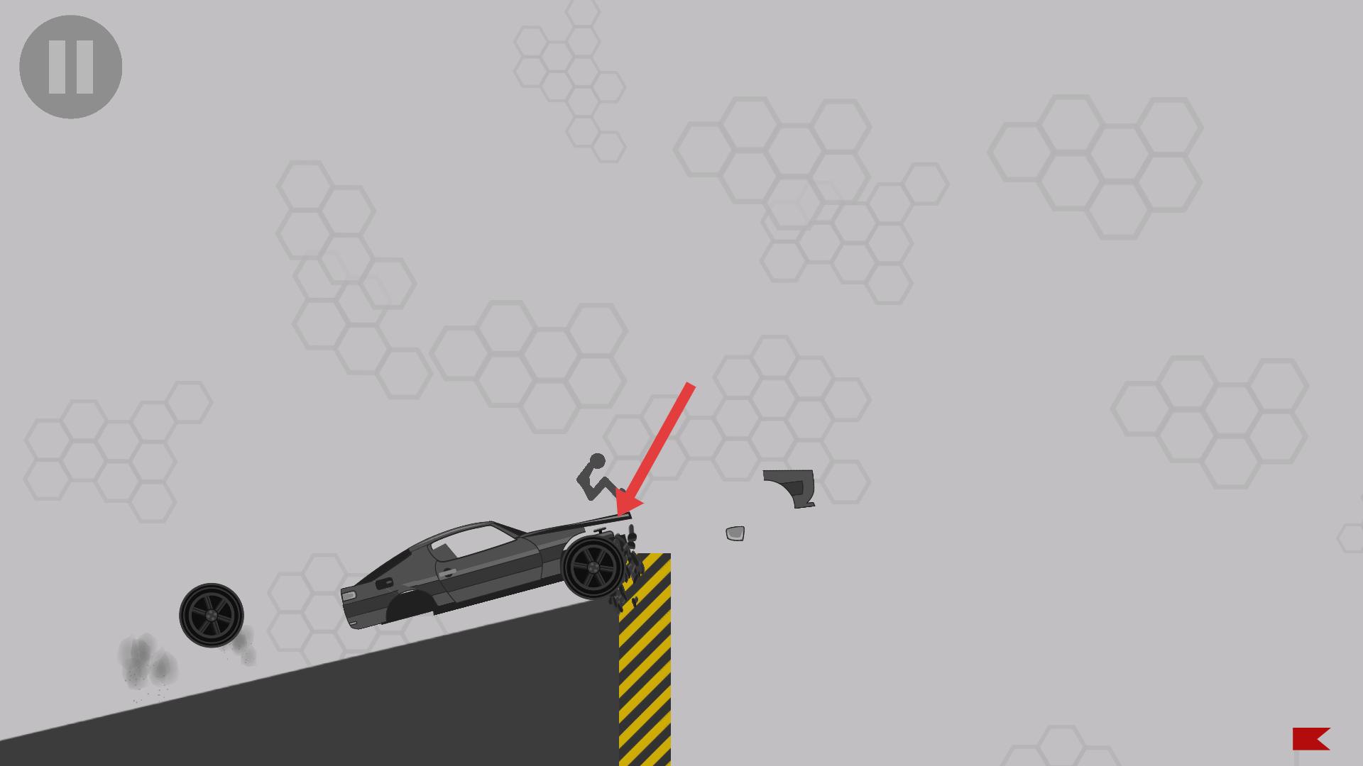 3、遇到坡道等地形時,駕駛車輛沖向邊緣,讓車輛發生碰撞、損壞,同時使火柴人受到沖擊,完成摧毀相關的操作。