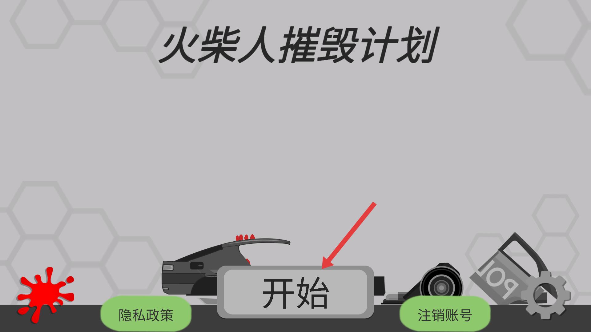 1、游戲初始界面,點擊【開始】按鈕,即可進入游戲,開啟火柴人摧毀計劃的冒險。