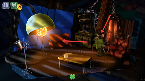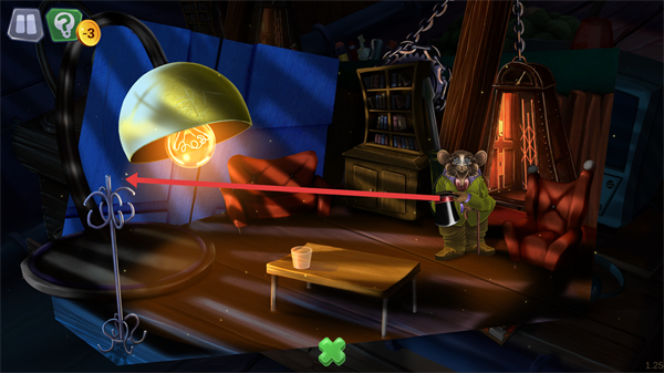 2.到右側里間,在書架上拿到一個紅色電燈泡。到右側桌子,將書本放在桌子上,然后把電燈泡放入燈里,照射出一串順序,對應13458位方向。
