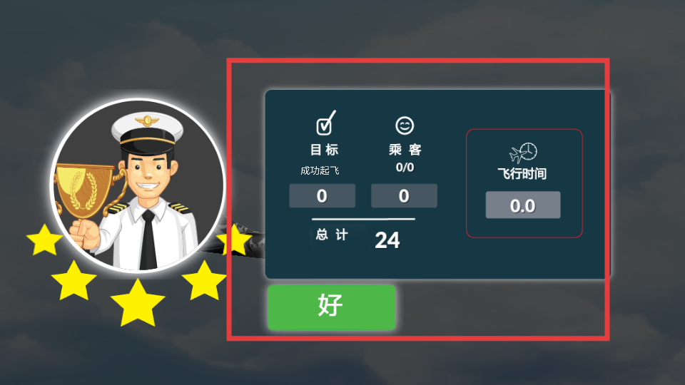 3、飛行過程中會有任務目標統計界面,顯示成功起飛等目標完成情況、乘客數量以及飛行時間等信息,完成階段飛行后可查看這些數據了解飛行表現。