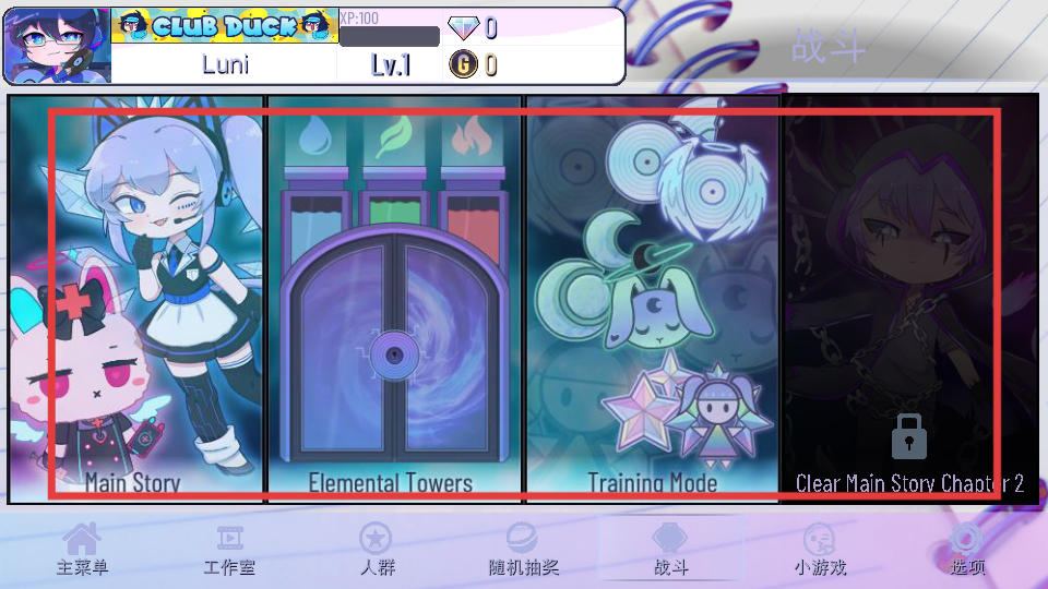 2、進入戰斗模式選擇界面后,這里能看到不同的戰斗模式,像主線故事、元素之塔、訓練模式等,選擇想要挑戰的模式,選好后即可進入對應戰斗場景。