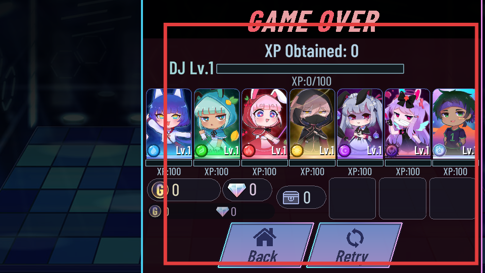 4、戰斗結束后會顯示結果界面,能看到獲得的經驗、金幣、鉆石等獎勵情況,若戰斗失敗可選擇Back,調整陣容或選擇其他模式再次戰斗。