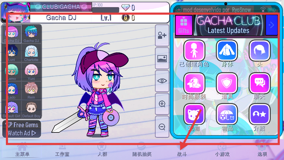 1、主界面中左側是已創建的角色頭像列表,右側是一系列功能按鈕,在主界面找到戰斗選項并點擊,進入戰斗相關頁面,即可開啟戰斗之旅。