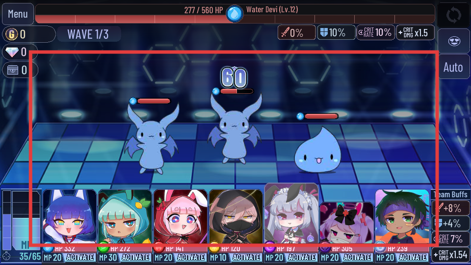 3、戰斗場景中下方會展示己方角色,上方是敵方單位,己方角色會自動進行攻擊,要注意觀察敵方狀態和己方角色的技能冷卻等,合理釋放技能爭取戰勝敵人。