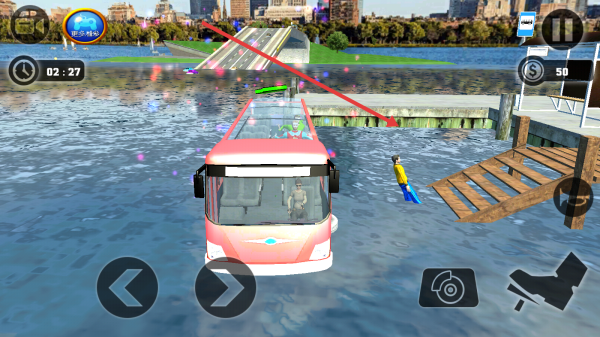 3、玩家進入駕駛界面,需要根據任務提示利用屏幕上的左右方向按鈕,操控水上客車前往指定地點接乘客。