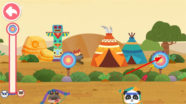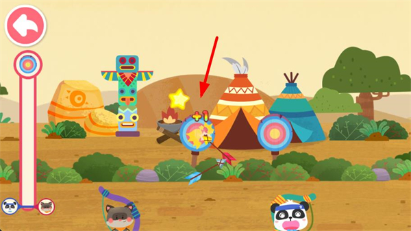 1、操控角色拉弓瞄準場景里的靶心,嘗試將箭射向靶心位置,開啟射箭挑戰環節,積累得分。