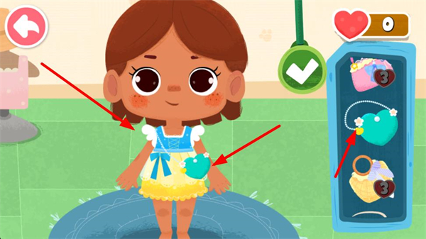 4、將制作好的服飾為角色穿上,再從道具欄里選擇配飾為角色搭配包包,完成后點擊確認按鈕,讓角色呈現完整造型。