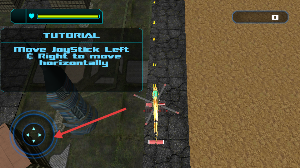 2、操控直升機時通過移動左側搖桿左右方向,來控制直升機水平移動,以此調整位置適應飛行需求。