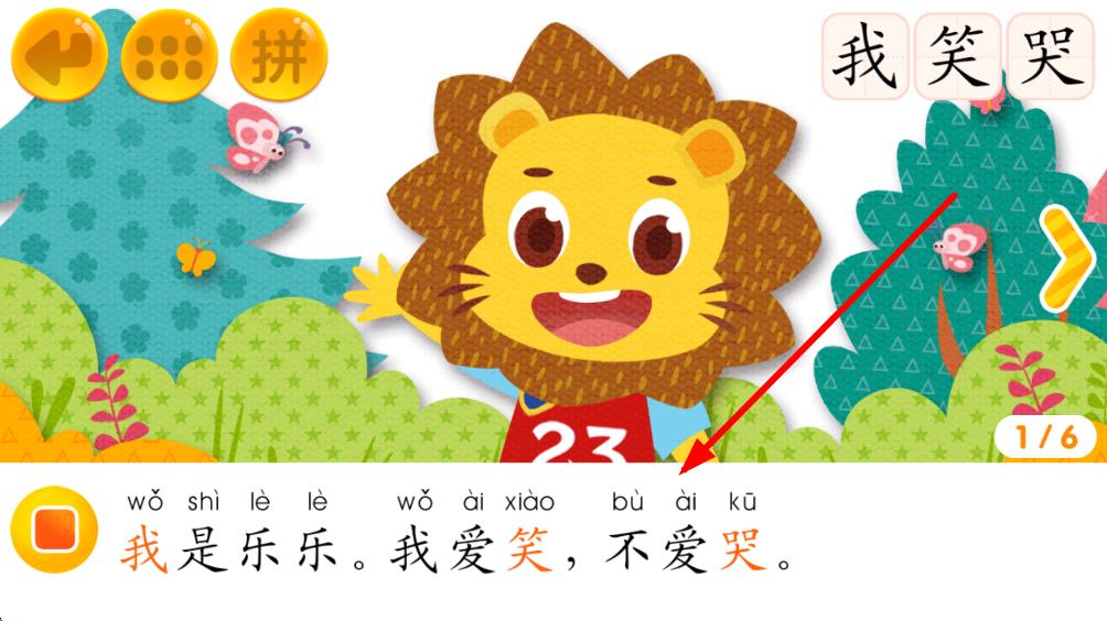 4、故事閱讀界面,能看到故事內容及對應的拼音標注,可跟隨內容進行閱讀,同時界面會展示相關漢字,輔助鞏固漢字的認讀與理解。