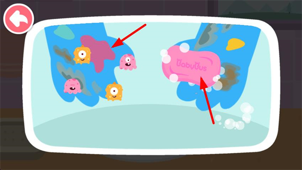 2、看到手上出現的細菌,拿出帶有BabyBus標識的香皂,搓出泡泡來清潔這些細菌,讓小手遠離臟污更清爽。