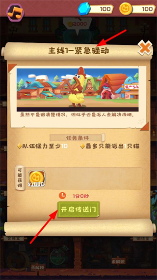 1、查看主線任務界面,了解任務條件后點擊開啟傳送門按鈕,進入任務準備環節,推進主線任務的流程。