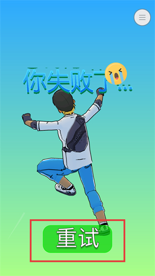 4、如果在騎行過程中失敗,出現你失敗了的提示界面,點擊重試按鈕重新開始當前關卡的挑戰。