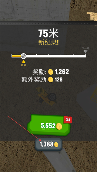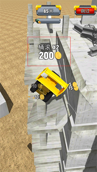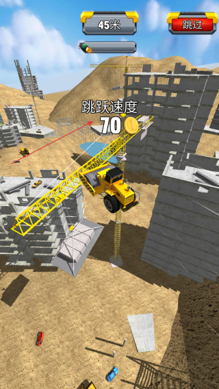 2、控制工程車前進并進行飛躍操作在飛躍過程,注意屏幕上顯示的跳躍速度等信息,以順利越過各種障礙獲得金幣。