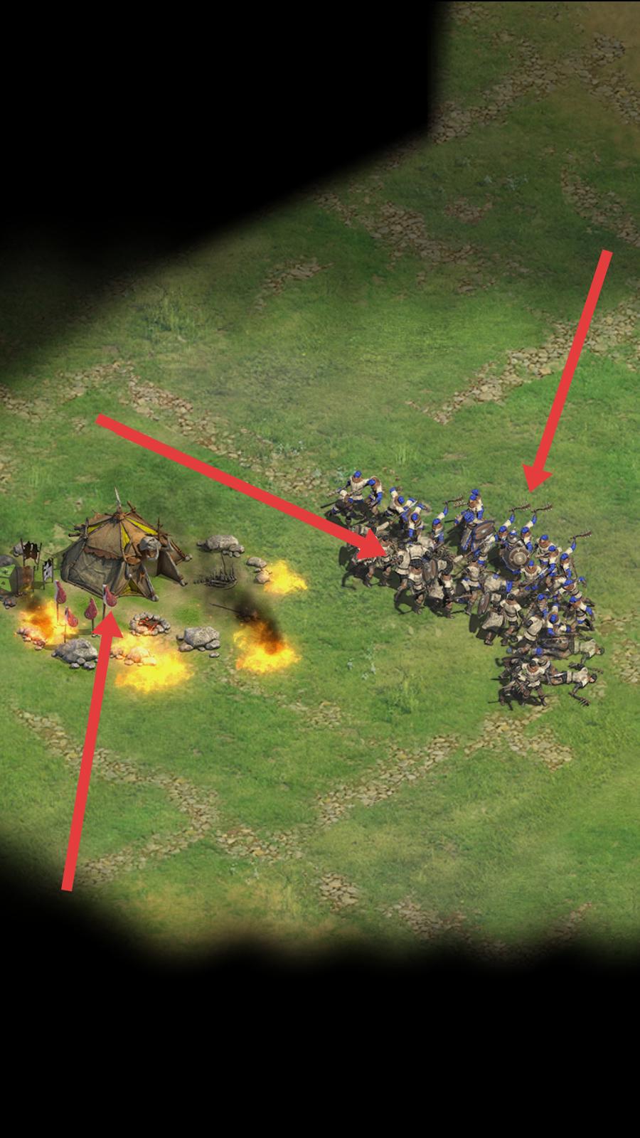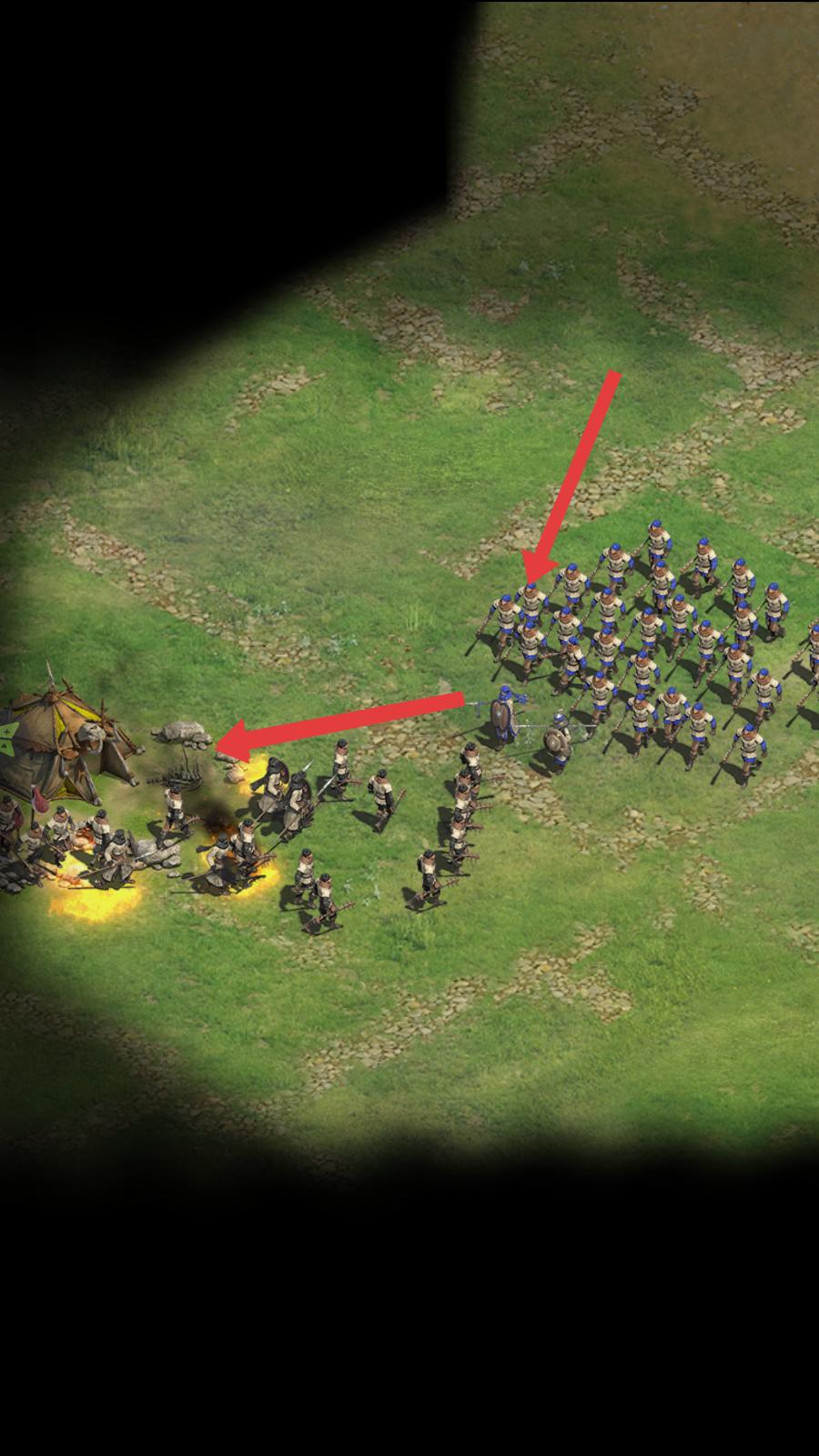 2、操控選好的部隊,朝著敵方營地進發,在行進過程中,觀察敵方動向,制定進攻策略。
