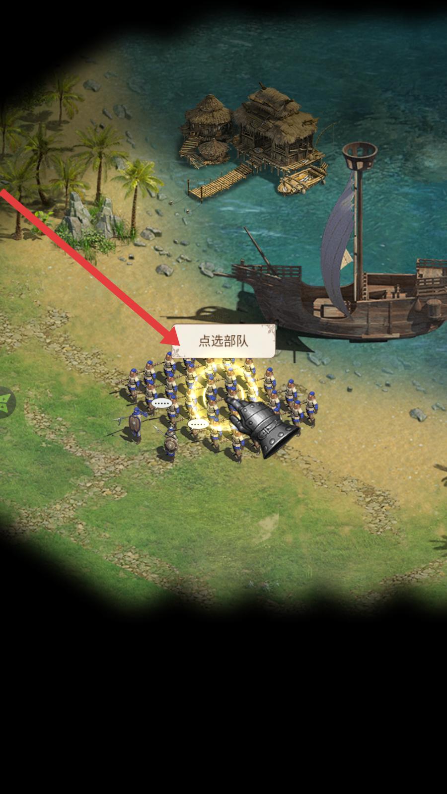 1、進入游戲,根據提示點選部隊,組建自己的軍事力量,為后續的戰斗和擴張做好準備。