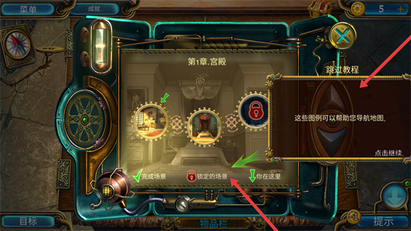 2、地圖里有圖例可幫助導航,不同場景有完成、鎖定等狀態,可根據圖例和場景狀態規劃解謎路線。