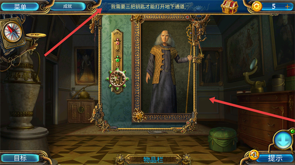 4、有些通道需要收集三把鑰匙才能打開,需在房間里尋找鑰匙,收集齊全后開啟地下通道,繼續解謎冒險。