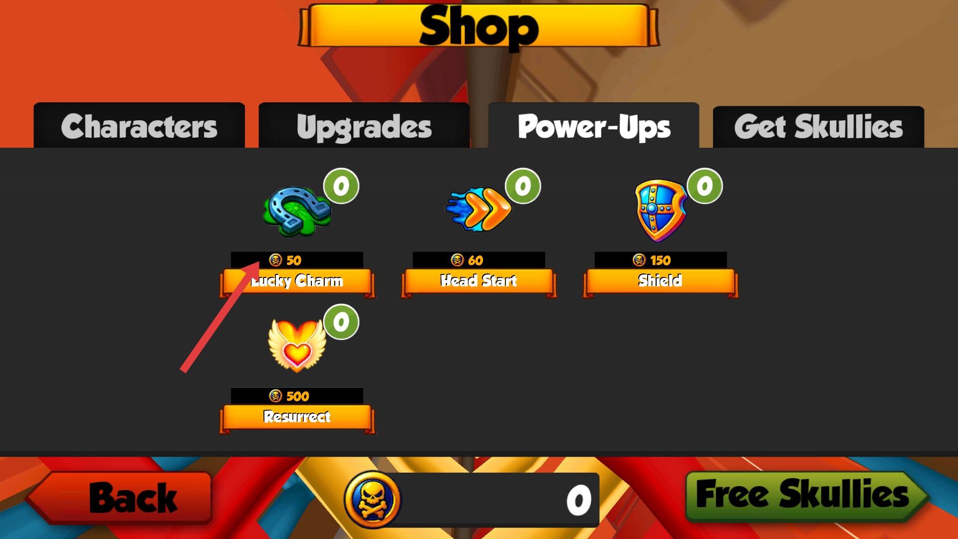 4、進入商店后,可在【Power Ups】分類下,用游戲貨幣購買像【Lucky Charm】這類道具,提升游戲中的運氣,助力冒險。