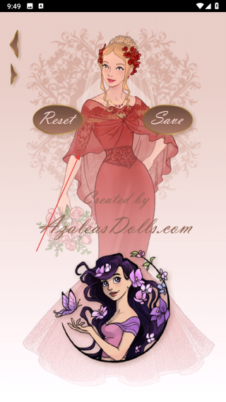 4、玩家為新娘和禮服搭配裝飾,增添婚禮的浪漫與精致感,在完成搭配后,點擊save保存你的設計作品。