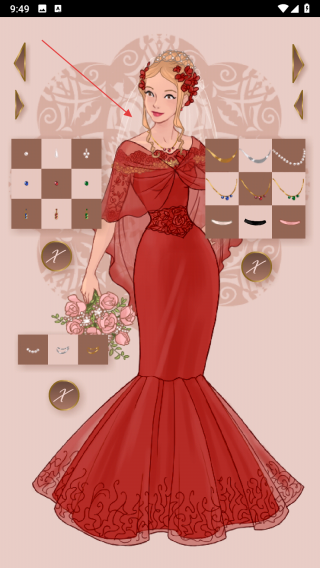 3、玩家需要為新娘選擇特色的多種風格禮服進行搭配,然后確定婚禮禮服的整體造型及飾品。