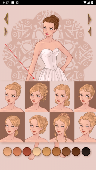2、進入設計界面后,首先可以從下方不同的發型選項中挑選適合新娘的發型,讓新娘的形象更貼合你的設計理念。