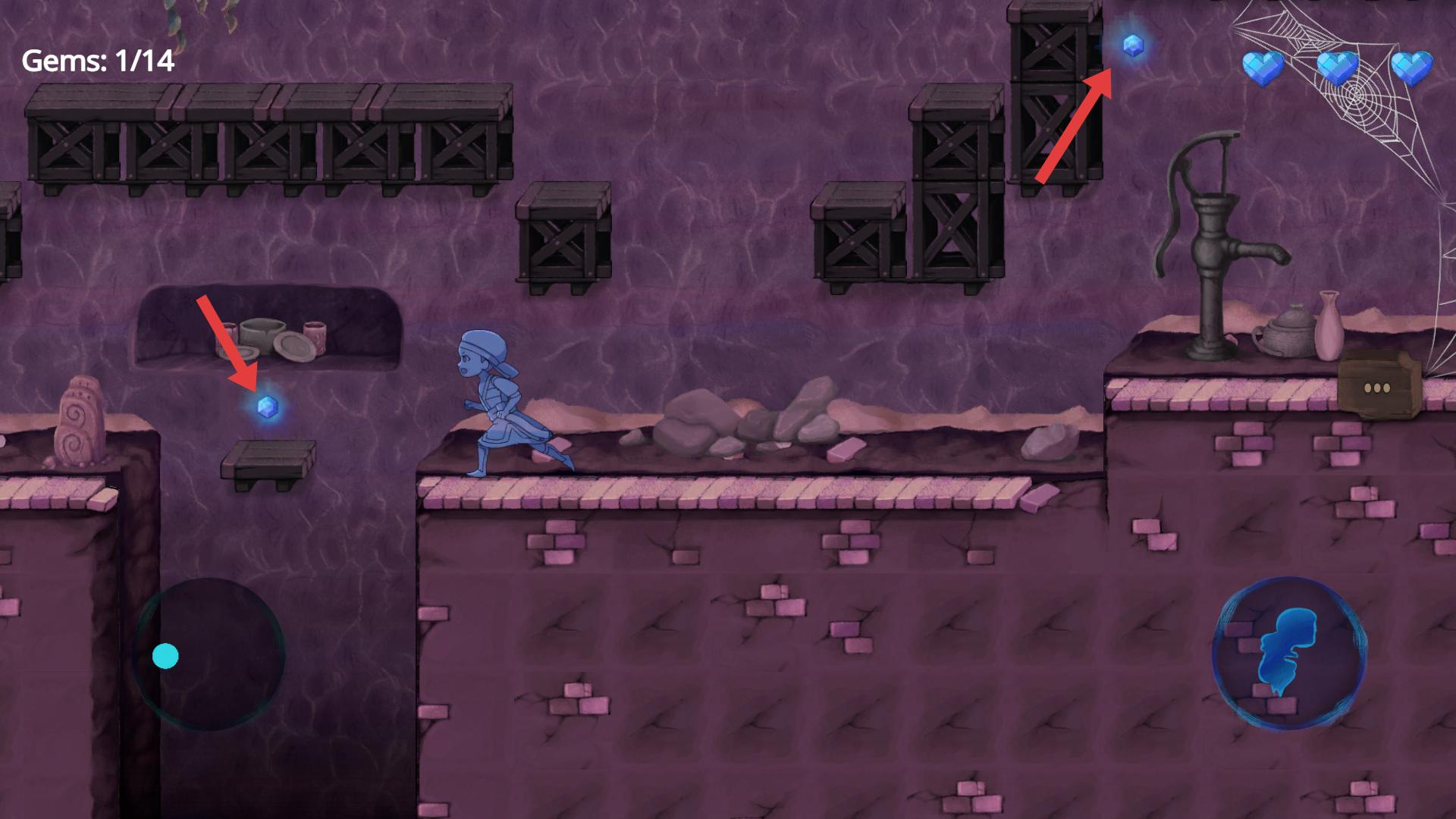 3、探索時注意場景中的藍色寶石,操控角色靠近并收集它們,同時利用平臺和障礙物,規劃移動路線,獲取更多寶石。