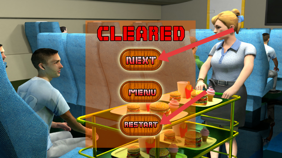 3、到達目標區域后,利用場景中的道具,比如餐車等,準備為乘客配送多種美味食物。
