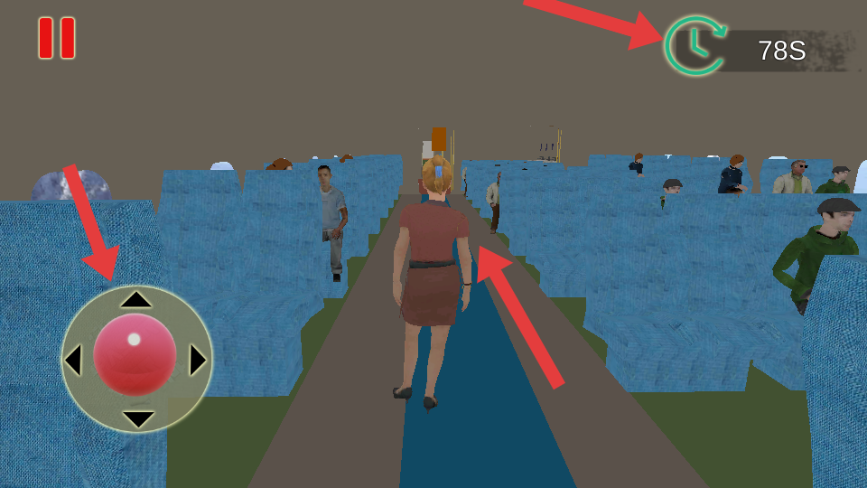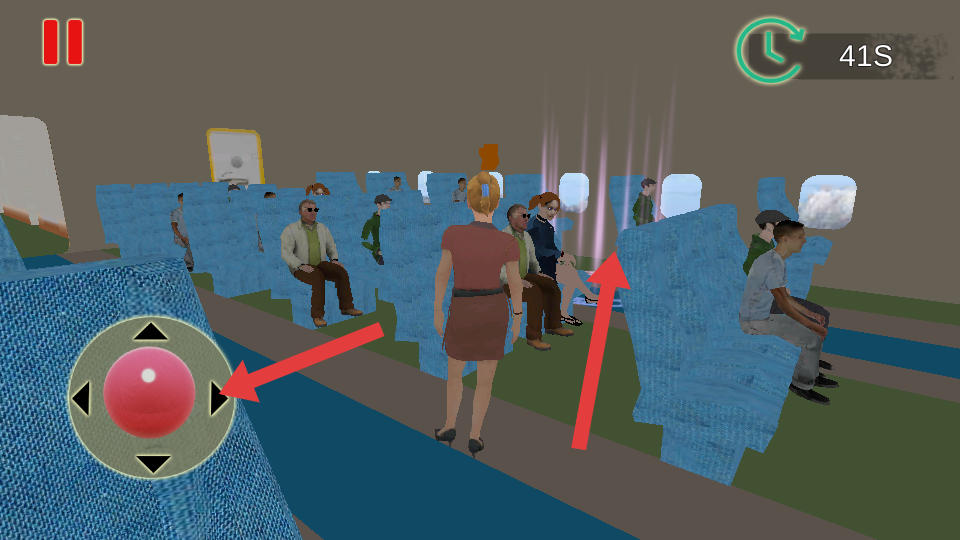 1、進入游戲,操控角色在飛機客艙內移動,要注意時間限制,在規定時間內完成相關任務。