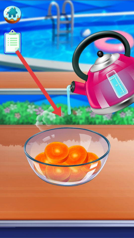 1、進入游戲,首先要對食材進行處理,比如按照提示切割胡蘿卜,為后續烹飪步驟做準備。