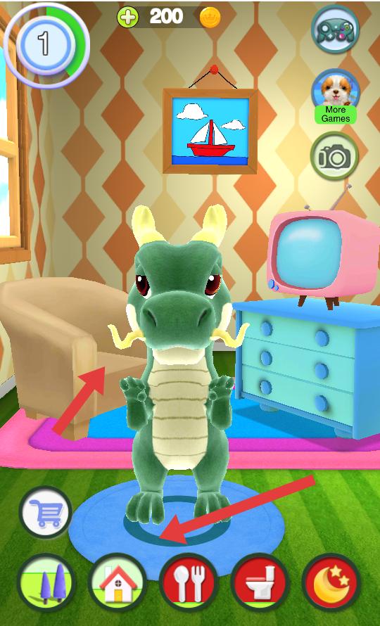 4、環境互動元素:設計花園、廚房等四個生活場景,每個場景包含十個以上可交互道具。拖動道具到小龍附近會觸發特定互動動畫,增強生活化體驗。