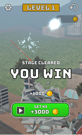4、玩家成功拆除建筑之后,完成關卡游戲會顯示STAGE CLEARED YOU WIN,并獲得金幣獎勵。