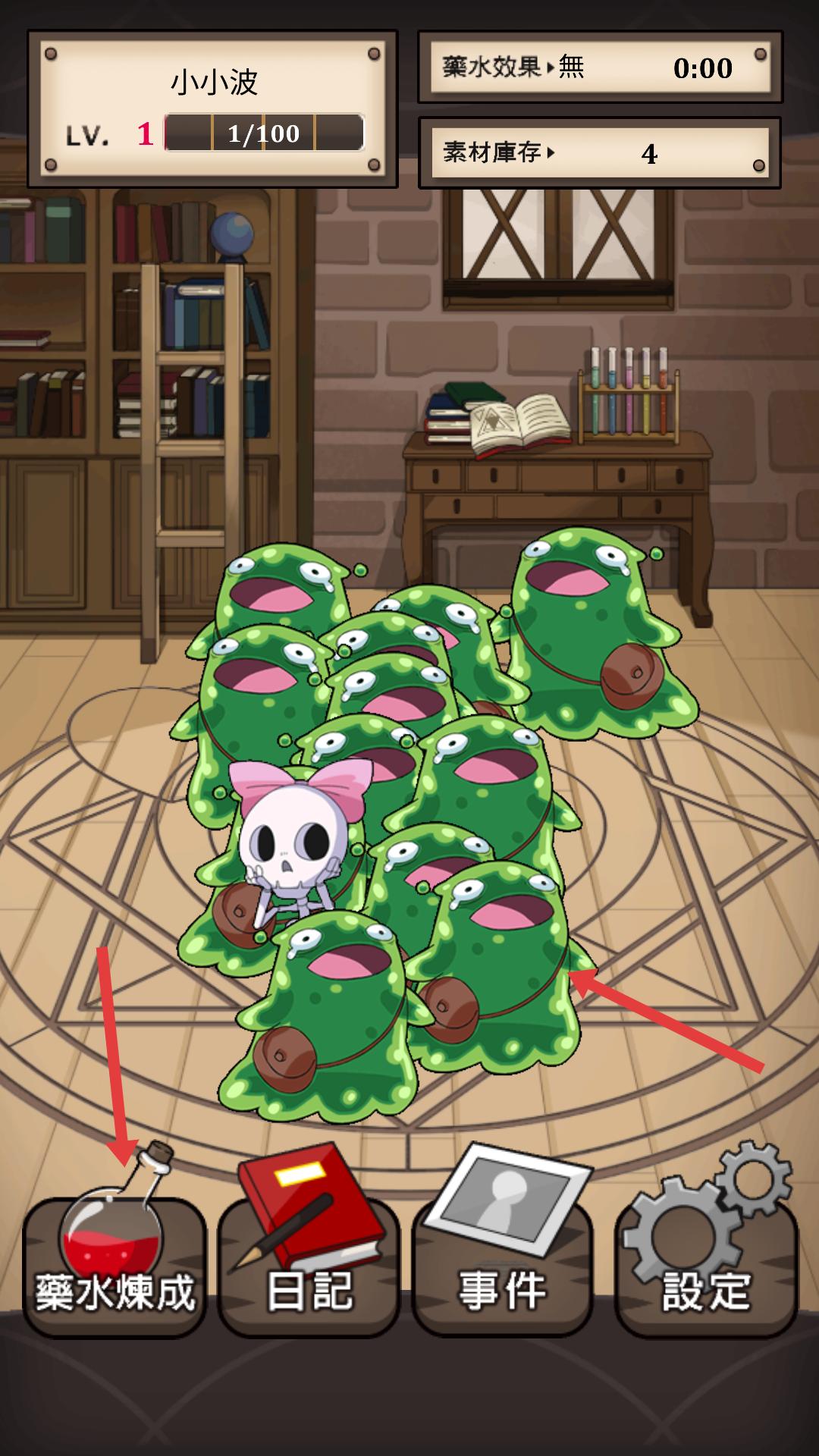 3、遇到綠色怪物時,點擊下方藥水煉成按鈕,嘗試煉制藥水,利用藥水來應對怪物,提升游戲進程。