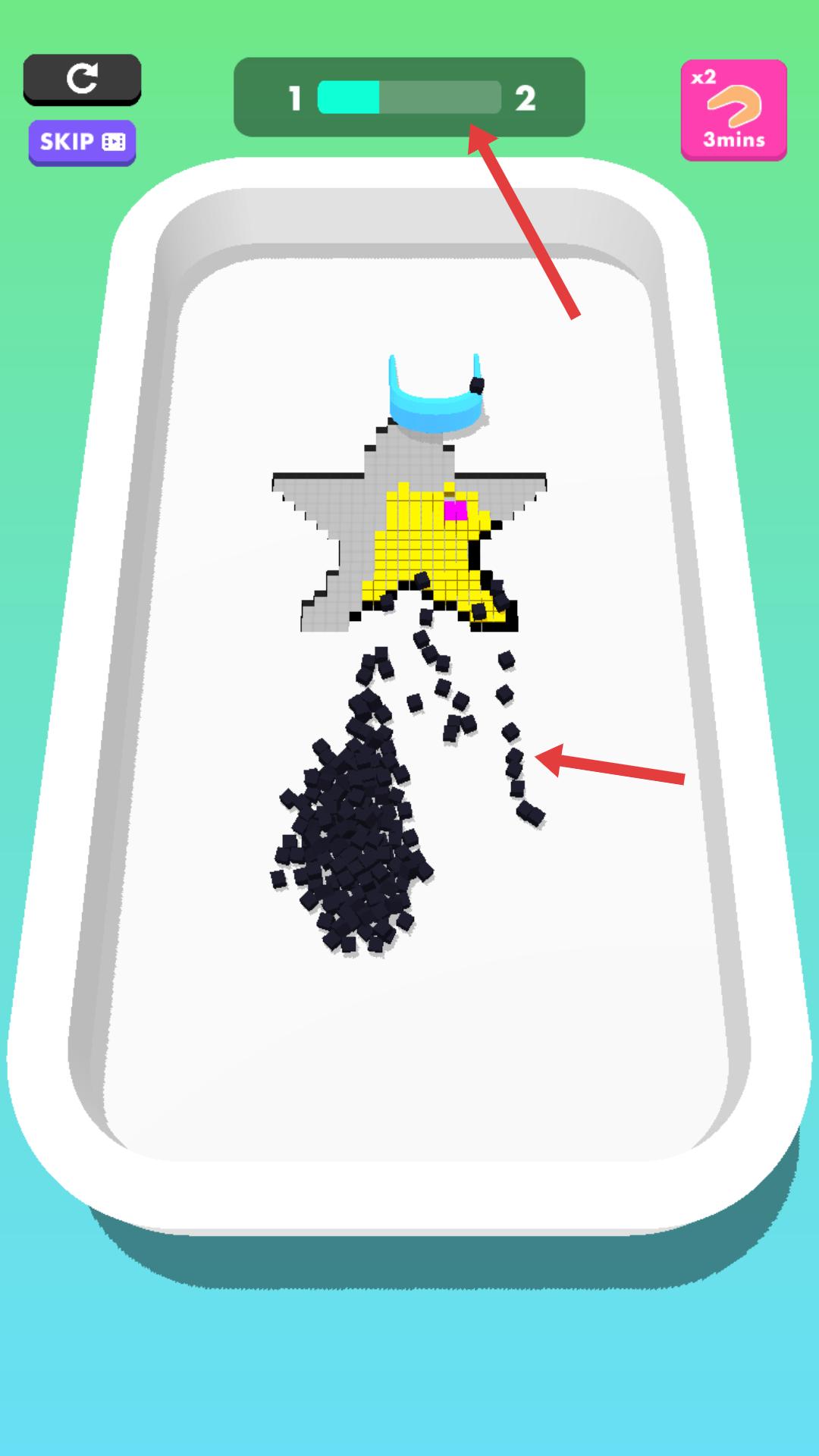 2、填充過程中,觀察上方進度條,確保黑色顆粒持續填充星形,隨著填充推進,進度條會逐漸變化,助力完成造型。
