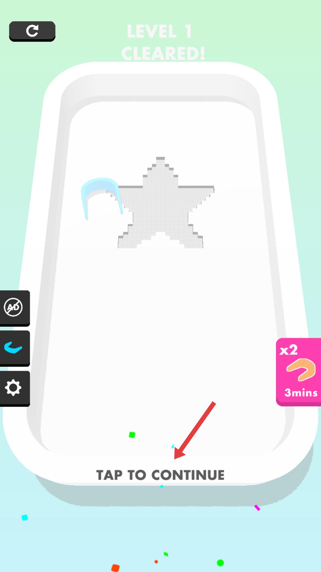 4、第一關成功通關后,點擊繼續游戲,進入下一關,繼續挑戰,體驗更多造型制作與破壞的樂趣。