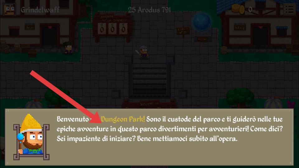 1、進入游戲場景,閱讀底部角色引導文字,了解進入Dungeon Park的背景與初始指引。