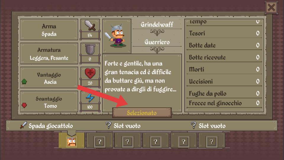 2、打開角色信息界面,查看Grindelwaff的屬性,武器等,點擊Selezionato確認角色選擇。