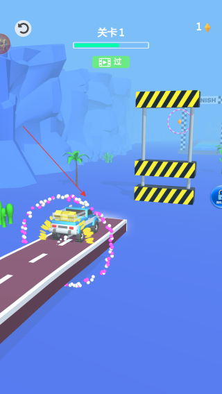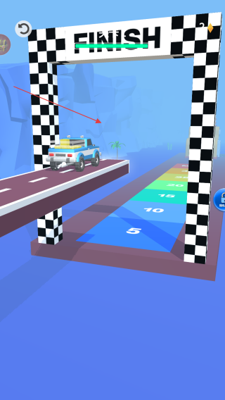 3、駕駛卡車朝著終點線帶有FINISH標識的區域前進,精準控制卡車,讓其順利通過終點線,完成關卡的運輸任務。