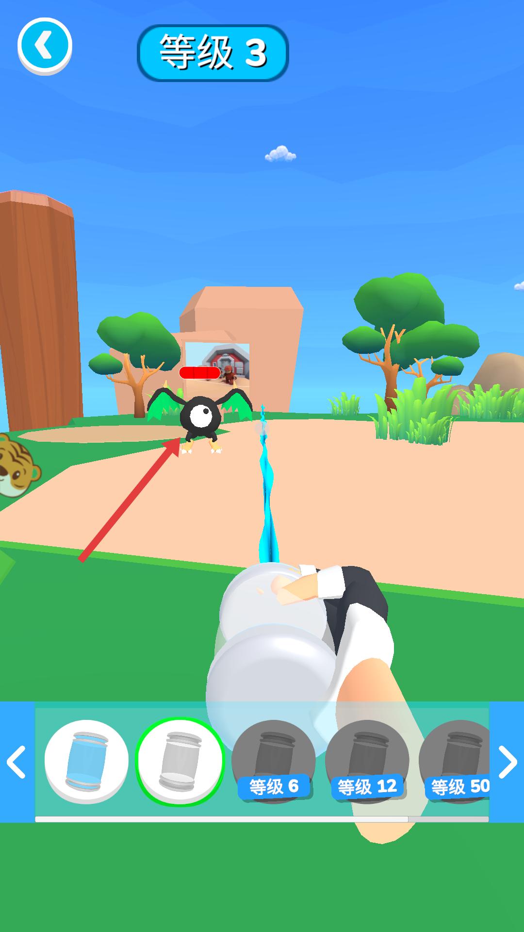 2、進入游戲后,操控手中的道具瞄準目標怪物,發射道具對其發起攻擊,逐步消耗怪物的血量。